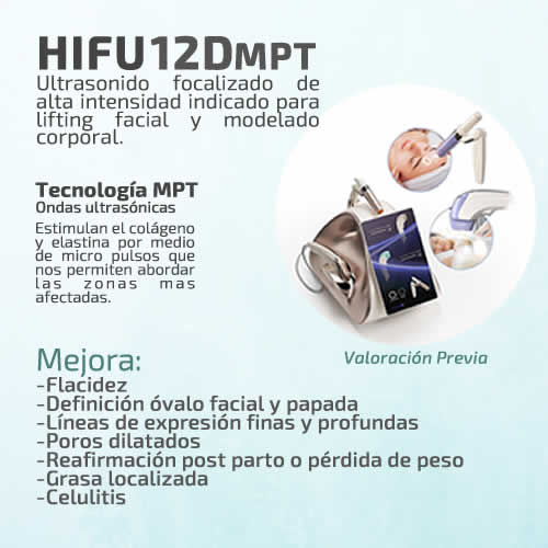 Es un ultrasonido focalizado de alta intensidad utilizado para quirúrgico y modelado corporal , las ondas del ultrasonido generan calor focalizado generando un estímulo en las capas de la dermis generando la producción de matriz extra celular, colágeno y elastina,contracción de las fibras colágenas provocando el tensado de la piel.